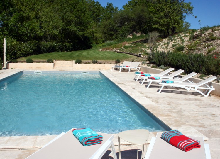 Villa Rudel is extremely private, set in 5 acres of land and surrounded by oak woods, sunflower fields and vineyards. There are lots of different terraces and space at Villa Rudel for you to spend time playing or relaxing. This includes:- A large tiled area accessed by steps just outside the kitchen with a large, secluded swimming pool (11m x 5m) heated out of season, 8 comfortable pool loungers and solar heated pool shower